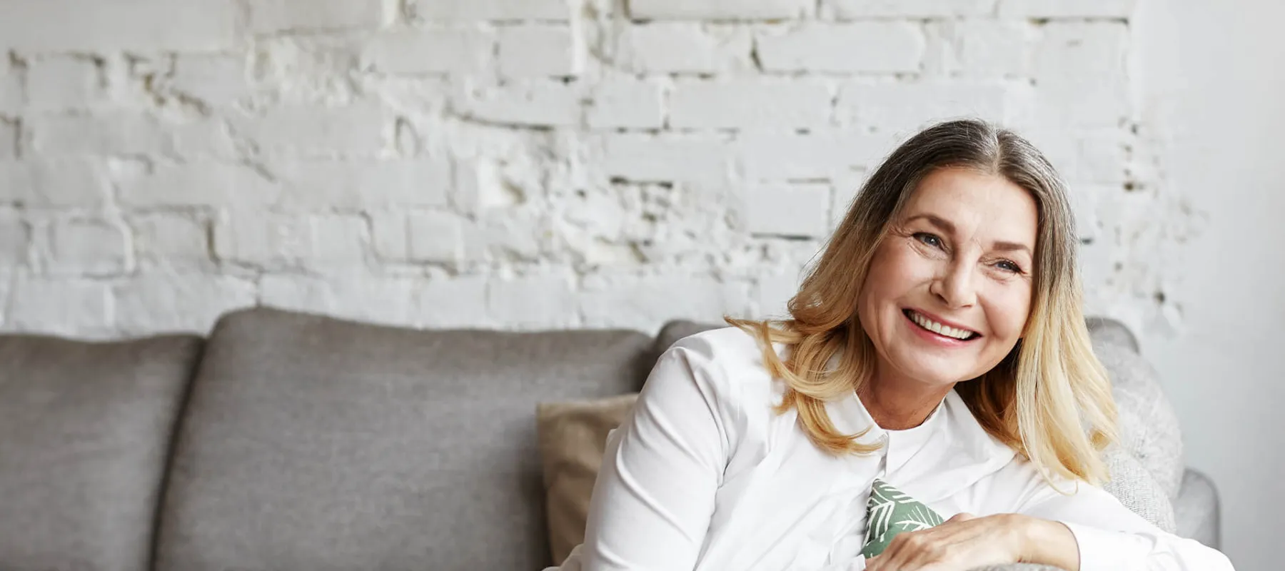 Charlotte Rampling sitting on a couch